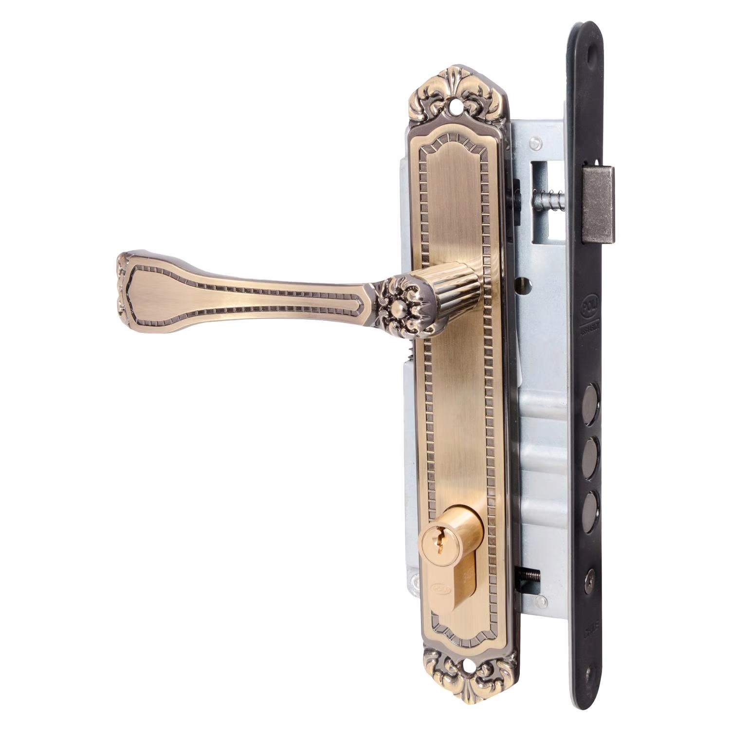 La Cerradura Barroca clásica Poli es un accesorio de cerrajería necesario para tu casa. Si lo que buscas es un mecanismo que te permita abrir y cerrar accesos todas las veces que estimes conveniente, acabas de encontrar el producto idóneo para esa finalidad. El dispositivo cuenta con una manilla ornamental plana, alargada y curva.